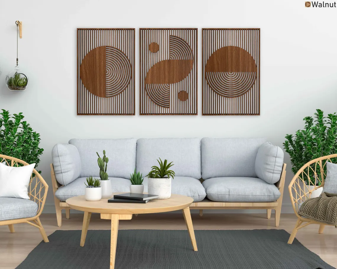 3D carved geometric wall art and decorative panels. From maze puzzles to triptych displays, each piece is precision CNC-machined from premium woods.