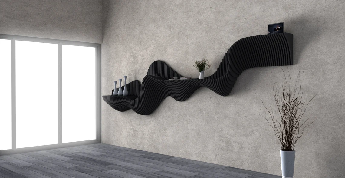 Stunning CNC-machined wood wall sculptures with flowing organic forms. Custom TV feature walls, floating shelves, and branded installations that transform any space.