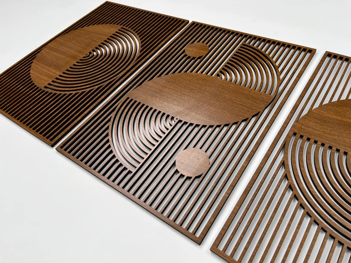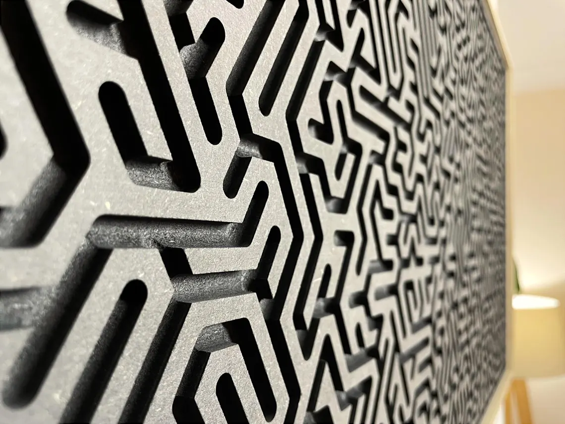 Precision laser cutting for felt panels, room dividers, and textile art. Perfect for acoustic solutions, interior design, and custom fabric projects.